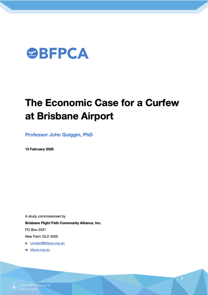 Prof. Quiggin’s findings challenge the long-standing narrative that Brisbane’s 24-hour operations are economically indispensable. Other Australian capitals such as Sydney and Adelaide operate successfully with legislated night-flight restrictions. The report argues that introducing a curfew would bring Brisbane into line with established national and international practice while delivering a clear net public benefit.